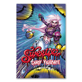 Created and written by SUZANNE CAFIERO, illustrated by JEFF ZORNOW, and produced by longtime Misfits and Ramones collaborator JOHN CAFIERO, Sweetie Candy Vigilante is a honey-dipped horror/fantasy that tells the tale of Sweetie, an ethereal, well-meaning (yet unquestionably unhinged) blood relative of the mythological "candy man." You know, the dude that takes the sunrise and sprinkles it with dew? Yeah - that guy. Dismayed by the decay of her community, Sweetie decides to enact a blood-caked, sugar-coated manifesto on society by using her proprietary family secrets to make the world a "sweeter" place - starting with her hometown, New York City! Isn't that nice? So buckle up, gumdrop, and make sure you save room for dessert, because this book has it all - blood, guts, and a sugar rush! Collects issues #1-6, including a gallery of original series covers by Zornow, Josh Howard, Nei Ruffino, Ned Ivory, Chrissie Zullo, Joe Simko, Godmachine and more, as well as a free MP3 of Osaka Popstar's dynamic punk rendering of the Archies' classic "Sugar, Sugar!"